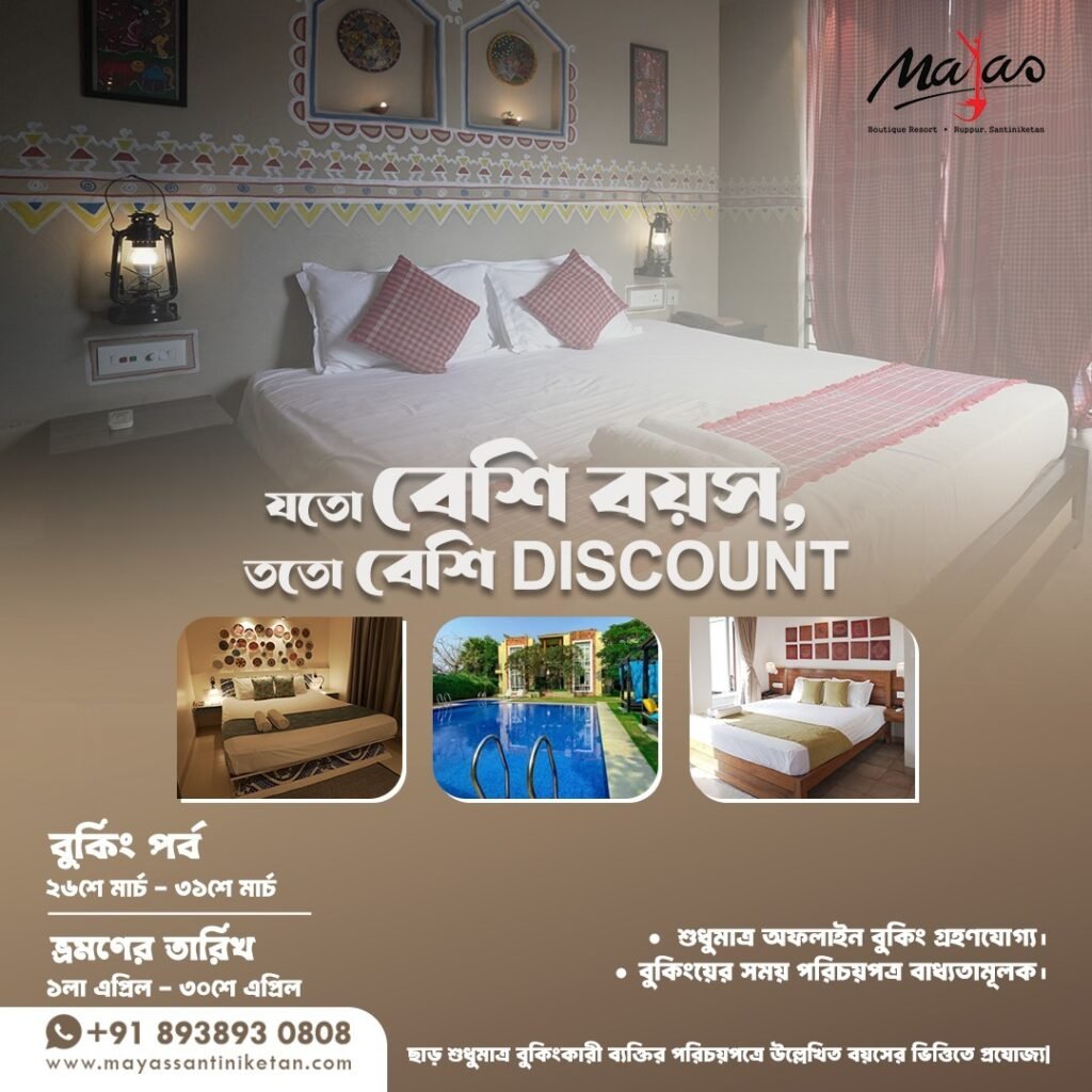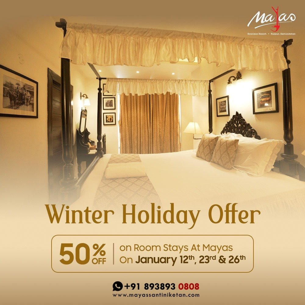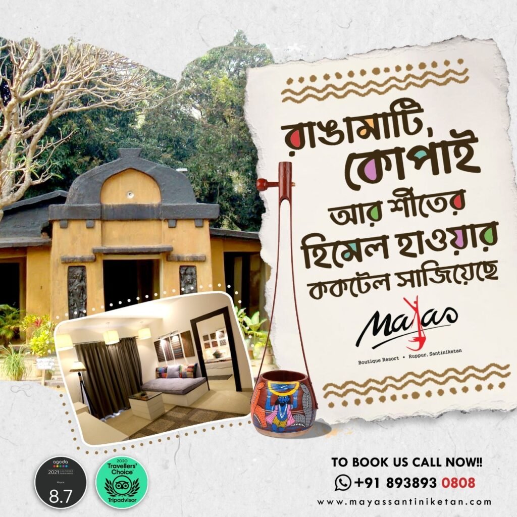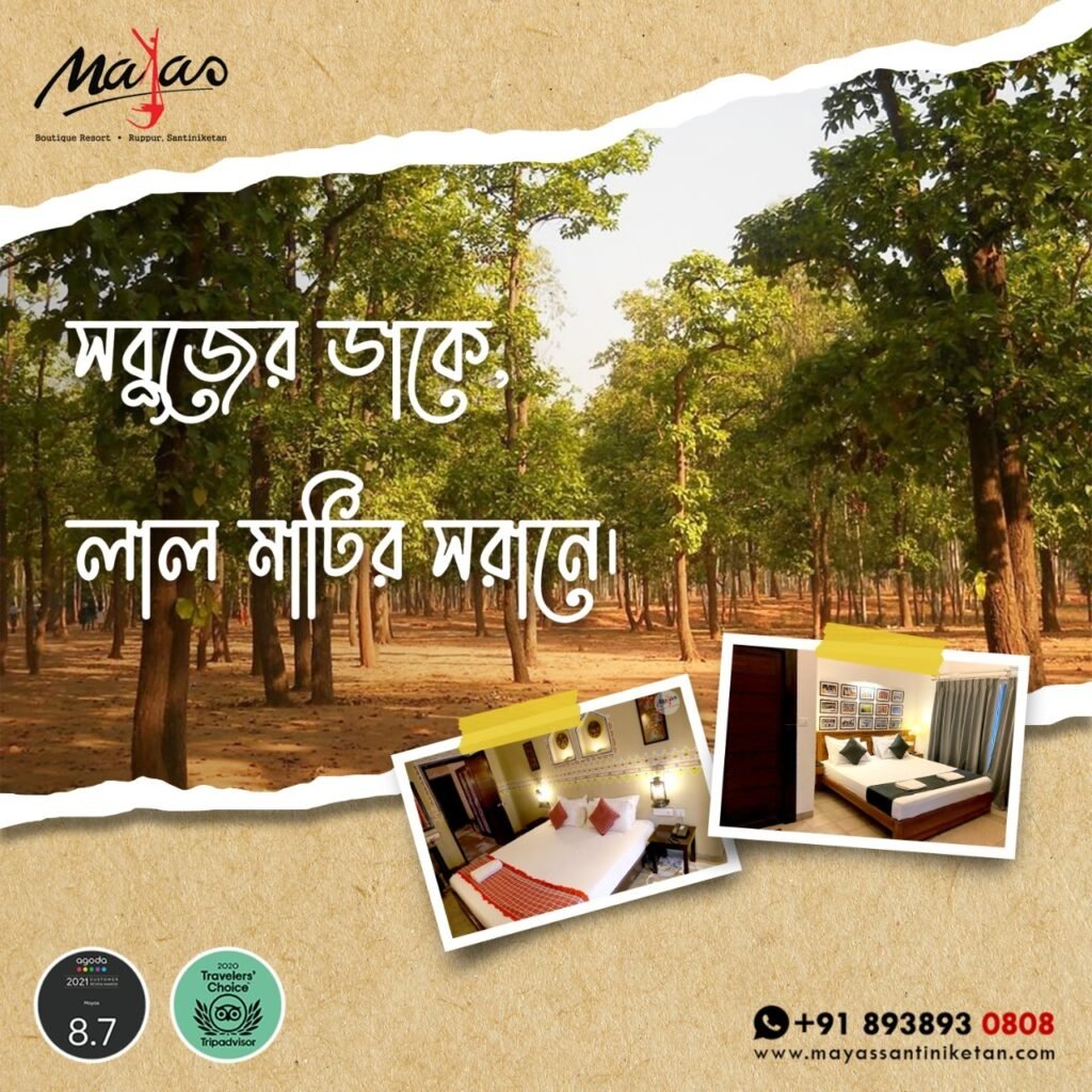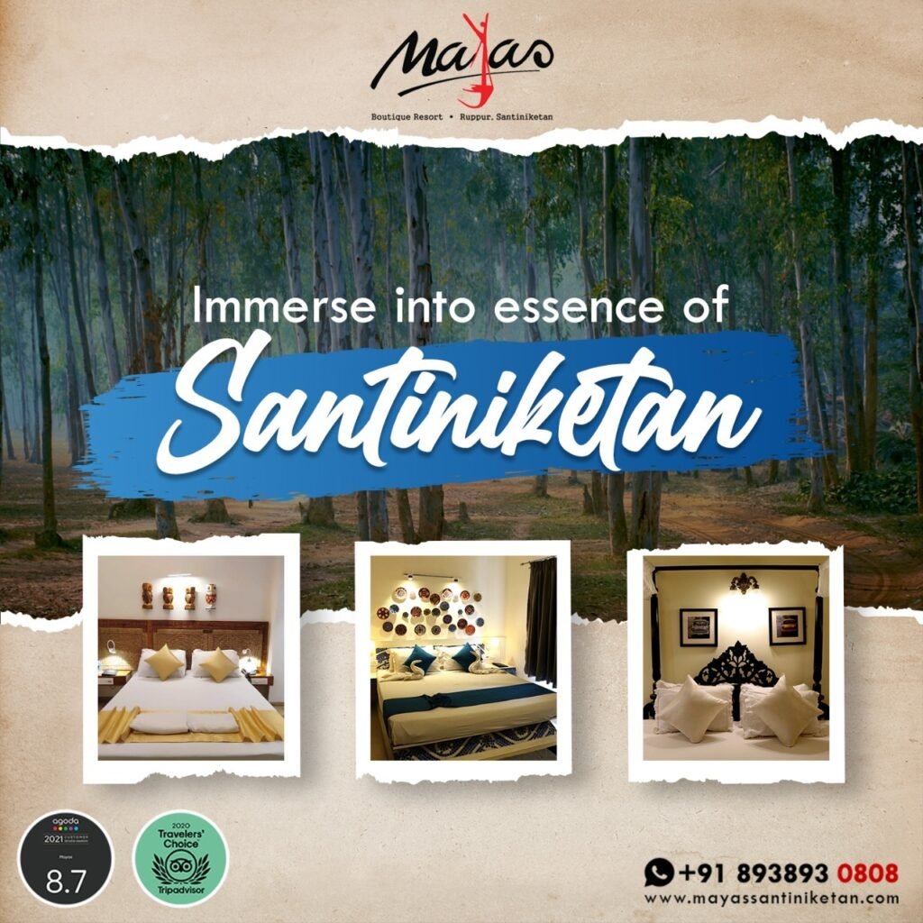 Mayas isn’t just another resort, it’s an experience in itself. Nestled just a stone’s throw away from the heart of Santiniketan, it offers a luxurious blend of comfort, culture, and charm. Every room, be it the Wood & Rope Room or the Tagore Room whispers a different tale.