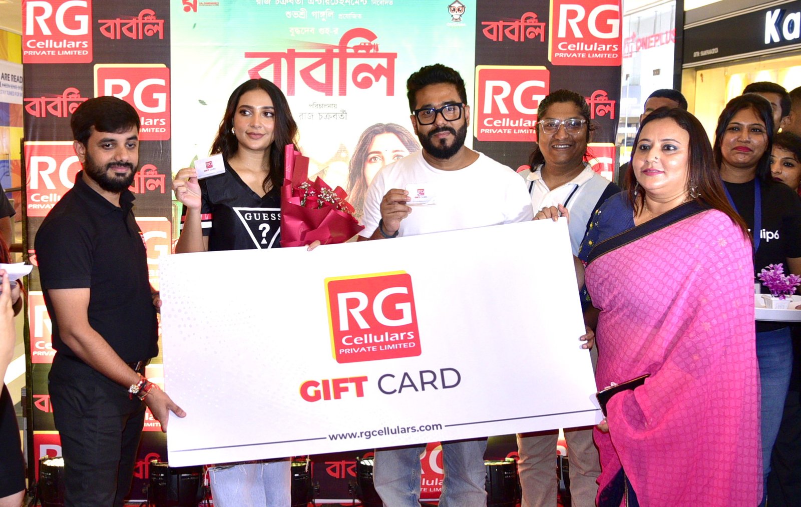 Gift card designs are created to offer a personalized and appealing way for customers to give RG Cellulars products as gifts. These designs feature attractive visuals, RG Cellulars branding, and spaces for personalization. Living Room Storiez has designed the gift card officially launched by tollywood stars Subhashree Ganguly and Raj Chakraborty while promoting the movie ‘Babli’ at Mani Square Mall.