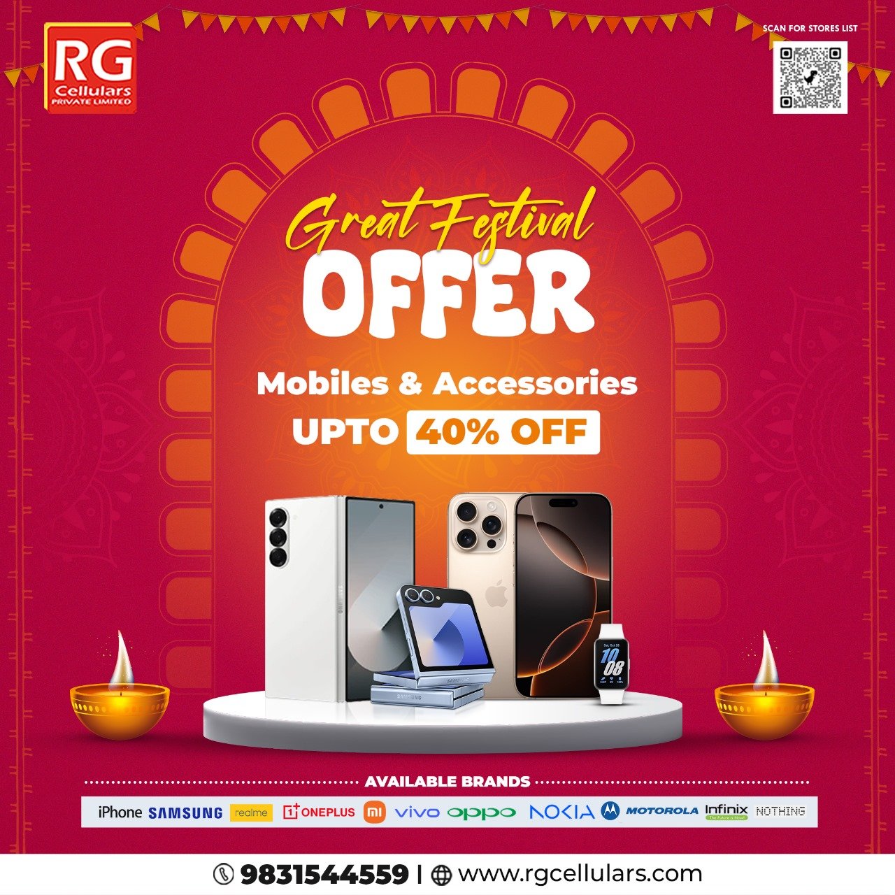Festival wish posters are crafted to celebrate important cultural events such as Durga Puja, Diwali, Christmas, New Year, and so on. These posters typically feature sober colors, traditional elements, and festive motifs that evoke joy and togetherness, while also reinforcing RG Cellulars’ connection with the community. It helps to create a sense of celebration and goodwill, enhancing customer loyalty and emotional engagement with the brand.