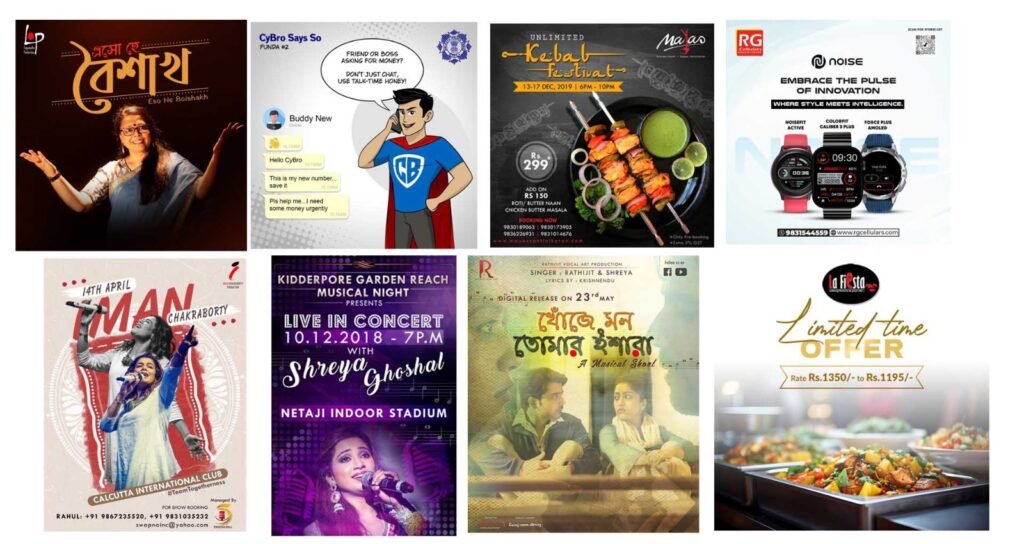 These were all about brand, we talked. But if we take a look at the public figure of our society, we have designed numerous event poster for the celebs. Singer Lopamudra Mitra is one of them. We have designed a lot of event posters for her concerts. As well we created this remarkable designs for Iman Chakraborty, Jojo, Shreya Ghoshal and so on.